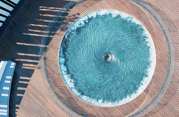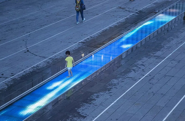 水本無形,它的物理特性讓它能輕易地跟隨容器而呈現(xiàn)不同的面貌。獨特的延展性使得水能呈現(xiàn)無以計數(shù)的不同效果。燈光的布置,介質的紋理,顏色和動態(tài)都能給水帶來無窮的變化